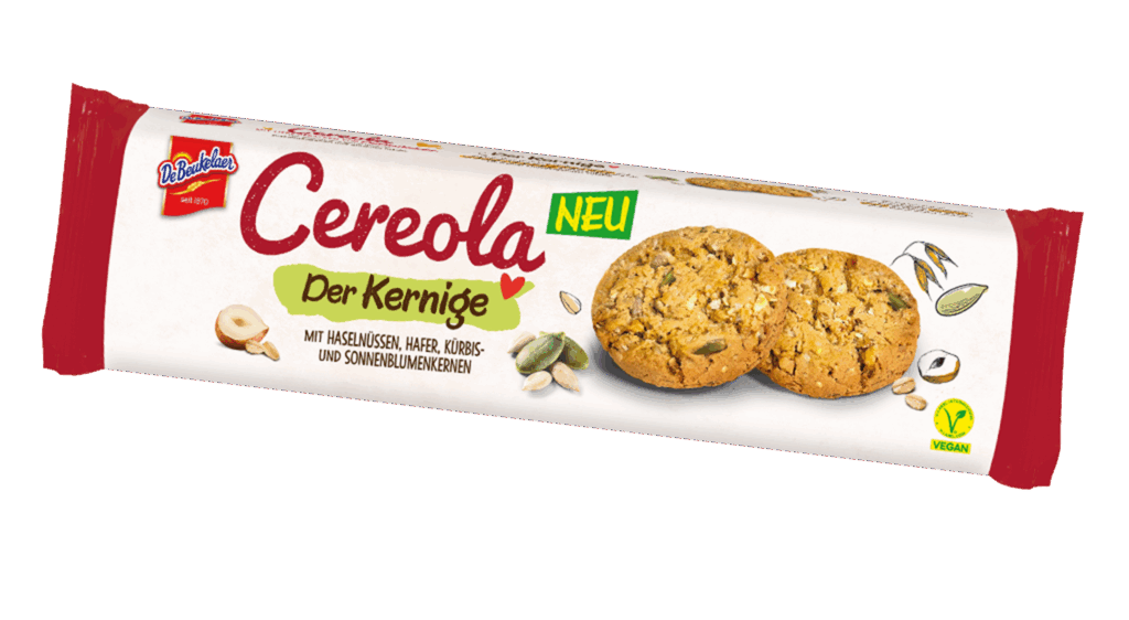 Unser leckerer De Beukelaer Cereola der Kernige bietet eine unwiderstehlichen Mischung aus geröstete Haselnüsse, Kürbiskerne, Sonnenblumenkerne und Haferflocken.
